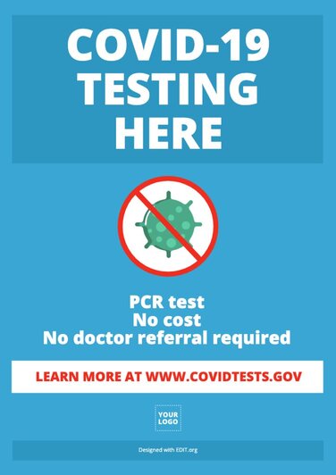 Don't wait any longer and help everything to be well indicated. They will help to maintain security and distancing measures and expedite all steps. Create a poster for COVID-19 tests or vaccinations with the templates from the online editor Edit.org.