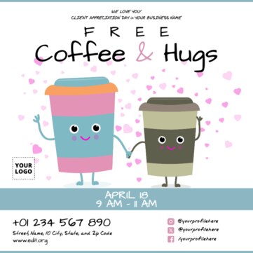 Start creating your marketing and communication strategy for your bakery, ice-cream parlor, cafeteria, or pastry shop in a simple click, and astonish your customers with the best designs with high-quality pictures of your pastries. Try Edit.org now!