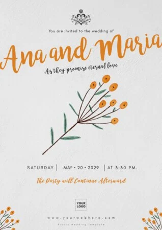 Enter our free rustic wedding invitation generator. You can also take a look at our wedding invitation templates. Get a professional result as if you were an expert but with your personal touch.