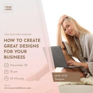 Easily customize free webinar ads examples. Edit the most creative webinar poster designs online. Customize the best webinar invitation examples and promote it like a marketing pro—anyone who sees your poster won't look away! In minutes, you will have your high-quality printable poster or banner ready to share digitally.