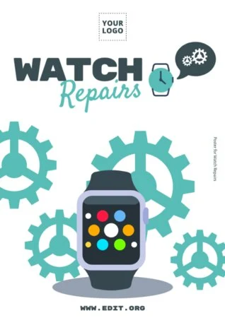 Watch repair stores are a great opportunity in the watch industry. Display on a poster or flyer the repair services you offer. You can also point out the time you need to perform a repair. Without using Photoshop you will create images with texts to sell more.
