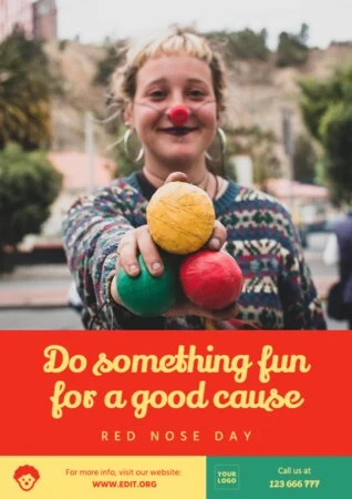 Levantar fundos para o Dia do Nariz Vermelho com cartazes ou folhetos maravilhosos e inspiradores. Personalize modelos gratuitos e editáveis em Edit.org.