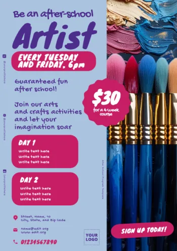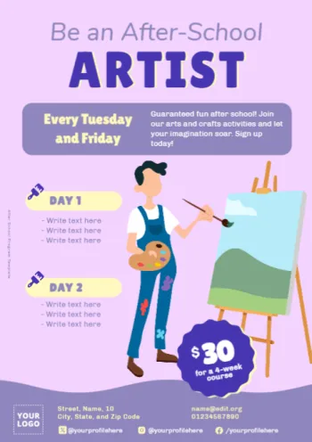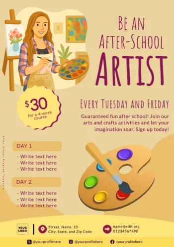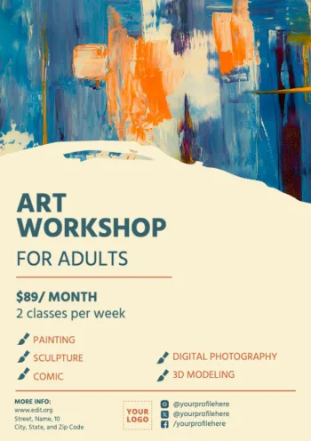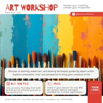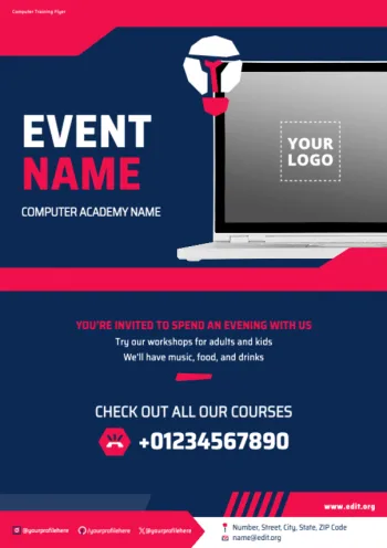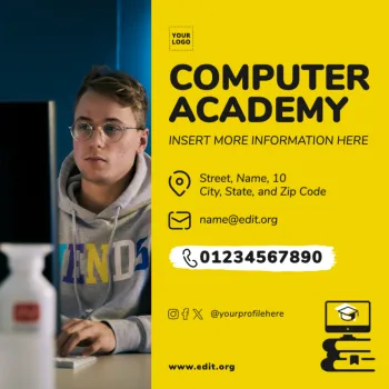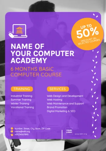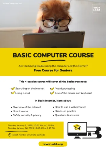 Quer você tenha uma escola online ou seus próprios cursos, encontre modelos personalizáveis em Edit.org com os quais você pode facilmente anunciar seu treinamento em poucos minutos.