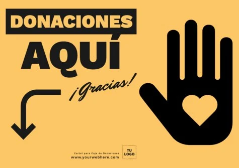 Si tienes una causa importante que busca la ayuda de personas con un bonito corazón, edita estas plantillas para señalar de forma clara dónde está la caja para depositar una aportación.