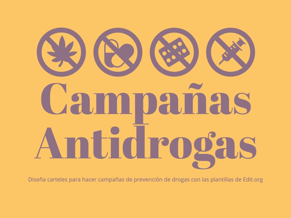 Edita carteles para una campaña de prevención contra las drogas de manera fácil y online. Modifica los colores, textos y fotografías desde nuestro editor gratuito. Imprime tu cartel antidrogas en HD o compártelo en redes sociales en el formato correcto.