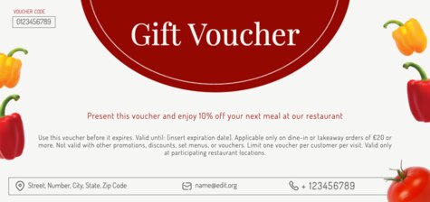 - Vales descuento. En el editor también podrás diseñar cheques regalo que podrás compartir por email a través de tu base de contactos. Personalízalos añadiendo el nombre propio de cada cliente en la plantilla. ¡Todo en menos de un minuto! Envíalos por aniversarios, fiestas o simplemente para premiar la fidelidad.