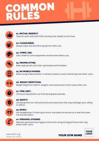 Editar los textos, títulos o listados te resultará tan sencillo como escribir en un documento Word. Cambia la tipografía o los colores por los corporativos de tu gimnasio, incluye el logo e imprime los resultados fácilmente.
