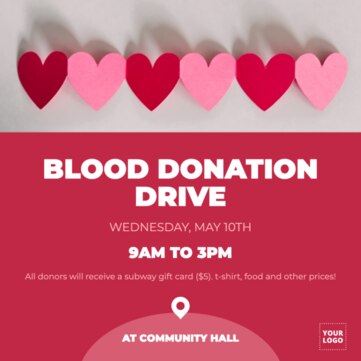 - Eventos y programas de eventos: anuncia y promociona todos los eventos que organices de forma original y llamativa. Crea folletos, banners o carteles para rutas y eventos deportivos, ferias, mercadillos, noches de películas, noches de bingo, eventos de voluntariado, charlas de todo tipo, cursos y seminarios, donaciones de sangre y conciertos, entre otros.