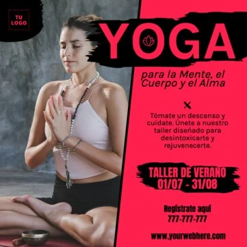 Entra al editor y crea tus plantillas para clases y cursos de Yoga y Pilates y promueve tus servicios, eventos y actividades online con solo unos clicks.