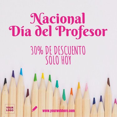¡Felicita a los maestros de tu institución de la mejor manera posible! Crea online desde diseños de banners para compartir online con frases inspiracionales hasta carteles y flyers con descuentos para ellos, diseños para anunciar los posibles eventos que hagas o bien banners para dar a conocer tus sorteos online.