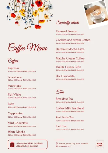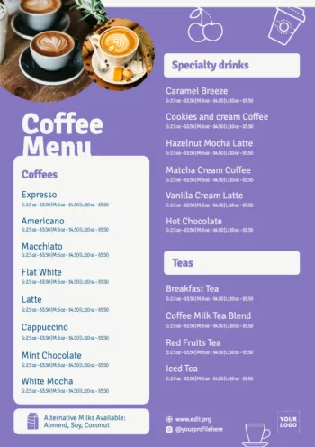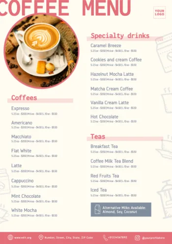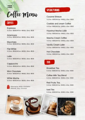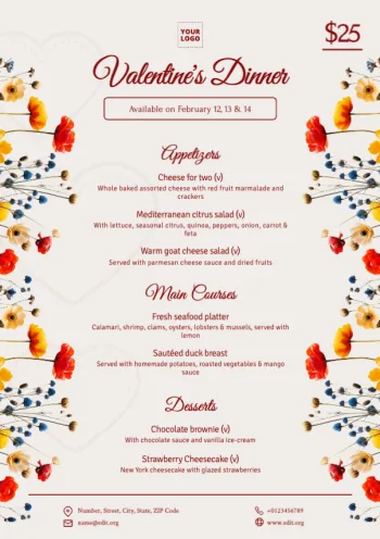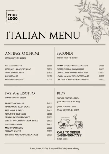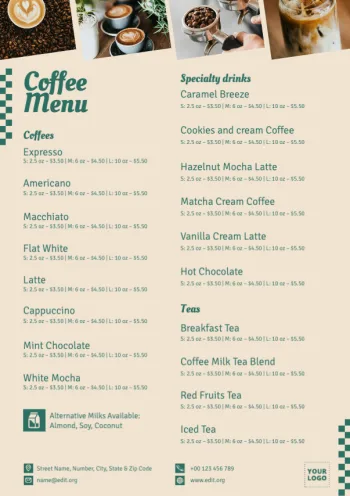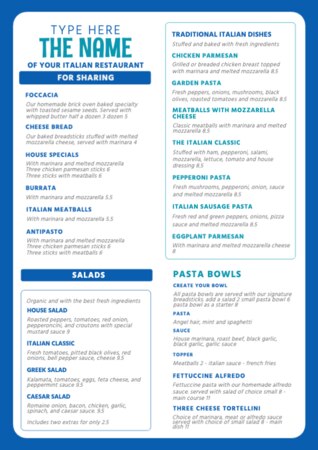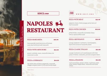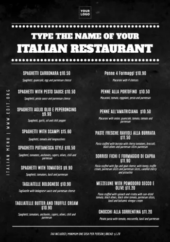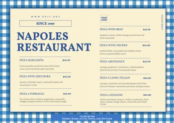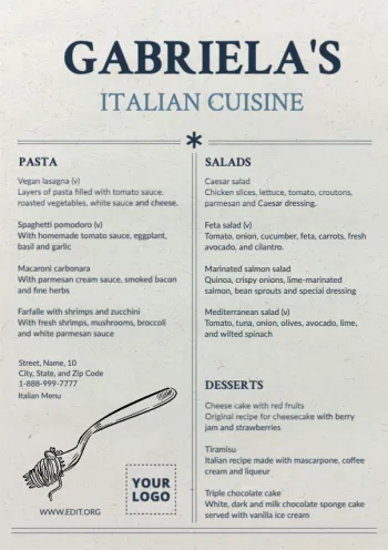 Encuentra en Edit.org plantillas de menús de restaurante, bar o pub, fáciles de editar y muy útiles para poder darle una identidad propia a tu negocio.
