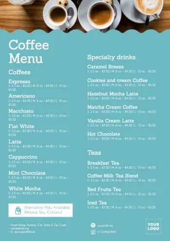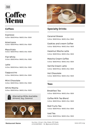 Cartas de restaurante gratis e imprimibles de Edit.org