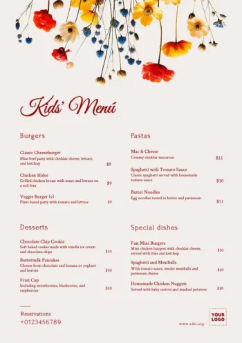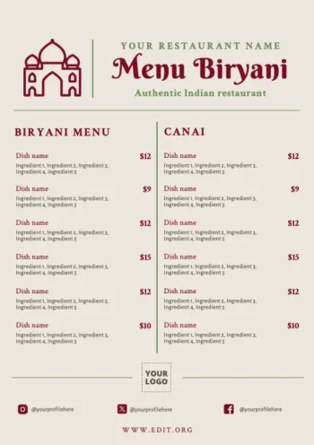 Plantillas de menú de Edit.org listas para editar e imprimir