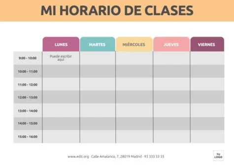 Diseños de horarios semanales descargables e imprimibles