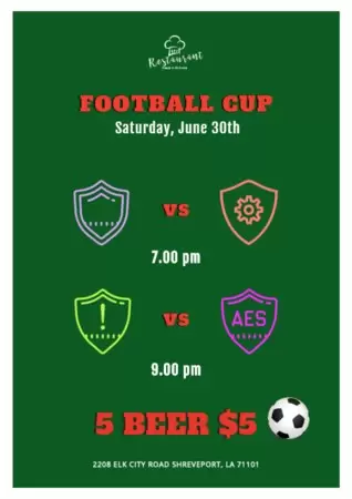 Ne manquez pas l'occasion d'obtenir de nouveaux clients grâce aux meilleurs designs pour votre établissement, aussi bien pour vos événements sportifs affichés que pour d'autres besoins comme les menus, les offres ou les chèques-cadeaux.