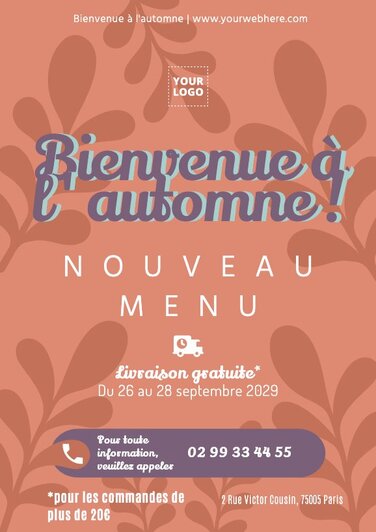 En moins d'une minute, vous créerez un design professionnel pour accueillir l'automne avec vos promotions et vos offres !