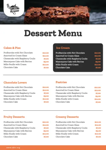 Chez l'éditeur, vous trouverez par ailleurs des modèles de menus de desserts personnalisables qui peuvent de plus être très utiles.