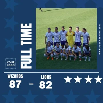 - Personnalisez l'image autant que vous le souhaitez : incluez les noms des joueurs, le numéro des dossards, les couleurs, la typographie. Ajoutez le blason de votre équipe et celui de l'équipe adverse.