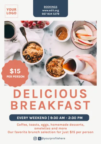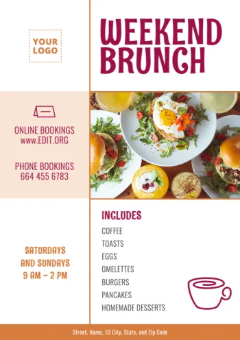 Modyfikowanie szablonów Edit.org jest bardzo proste i możesz to zrobić z dowolnego miejsca i z dowolnego urządzenia z dostępem do internetu. Jednym kliknięciem możesz dostosować wszystko, co chcesz, takie jak obraz tła, kolory, typografię, elementy i logo. Możesz również utworzyć menu restauracji z kodem QR za pomocą dostosowywanych szablonów, aby to zrobić.
