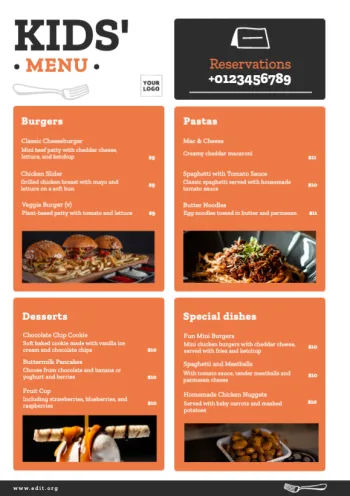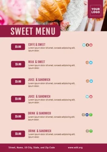 Stwórz spersonalizowane i profesjonalne menu dla swojej restauracji, baru lub pubu za pomocą edytowalnych szablonów Edit.org.