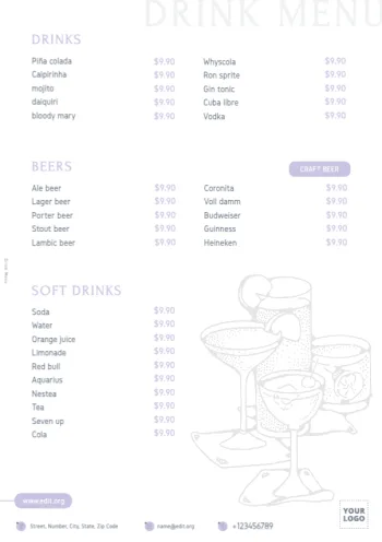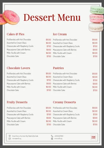 Codzienne menu. Wreszcie, chociaż zwykle jest to format drukowany, możesz również udostępniać codzienne menu w mediach społecznościowych lub na swojej stronie internetowej w formacie banerowym. Dobrą zaletą edytora jest to, że możesz zapisać wszystkie swoje kreacje w profilu użytkownika, dzięki czemu możesz modyfikować menu z jednego projektu.