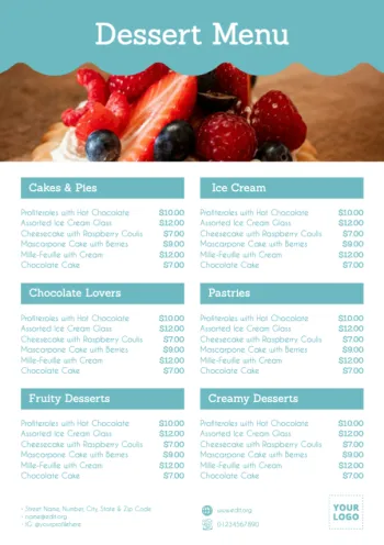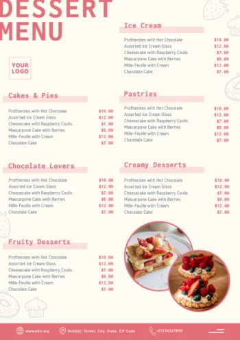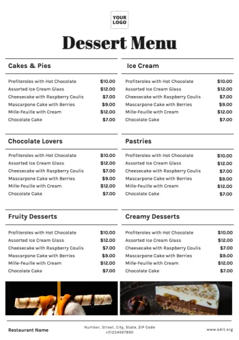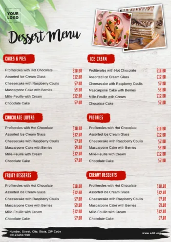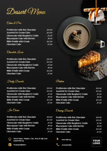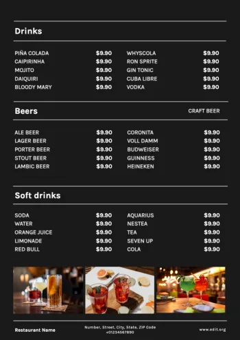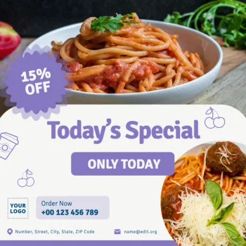 Krótko mówiąc, na Edit.org znajdziesz projekty restauracji, które pomogą Ci poprawić wizerunek Twojej firmy i zdobyć nowych klientów. Zacznij teraz edytować szablony online dla restauracji!