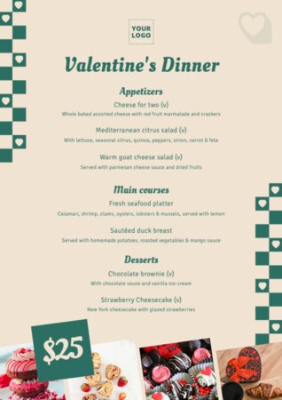 Menu: nie ma lepszego sposobu na poinformowanie klientów niż pokazanie im atrakcyjnego menu! W edytorze znajdziesz wiele szablonów, które posłużą jako podstawa do przesłania zdjęć swoich potraw. Jeśli nastąpi zmiana w którymś z posiłków, po prostu zmień obraz, zachowując ten sam format. Następnie pobierz wynik w najbardziej odpowiednim dla siebie rozmiarze lub udostępnij go online.